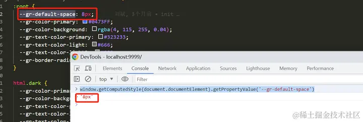 最后还可以通过JS方法获取CSS变量内容