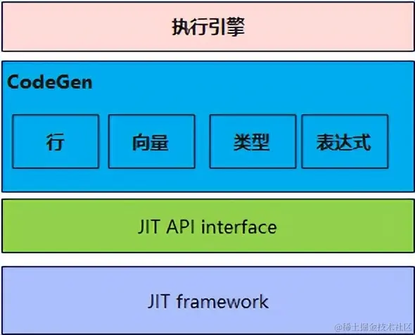 数据库在执行引擎中,运用LLVM技术提升SQL的执行速度。如下图所示: