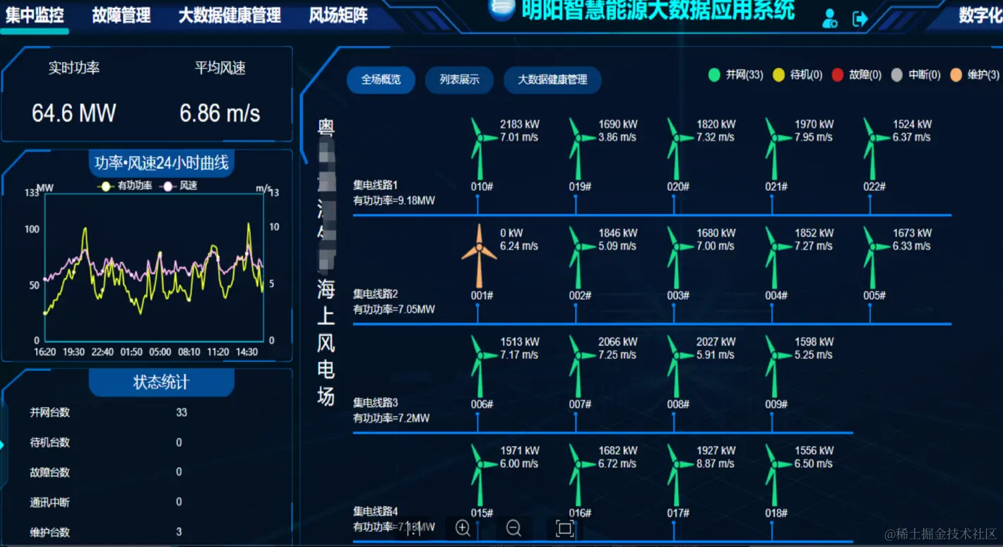 在“明阳集团能源大数据应用系统”中,TDengine 起到了关键作用,实现了数据的高效存储与处理。通过底层的数据分片分区策略,TDengine 能够灵活地动态扩展资源,避免资源瓶颈问题。其高速的查询能力帮助我们实现了风机设备的实时监测与预测,使我们能够及时发现异常和故障,并采取相应的维修或调整策略,结合数据进行其他业务应用也变得更加便捷。