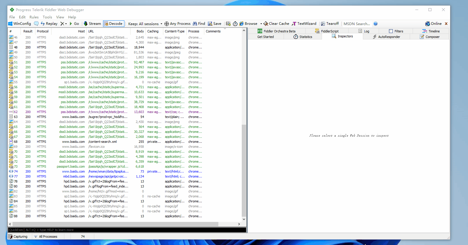 Recent Archives:查看最近之前捕获到的 SAZ 文件格式保存的流量。