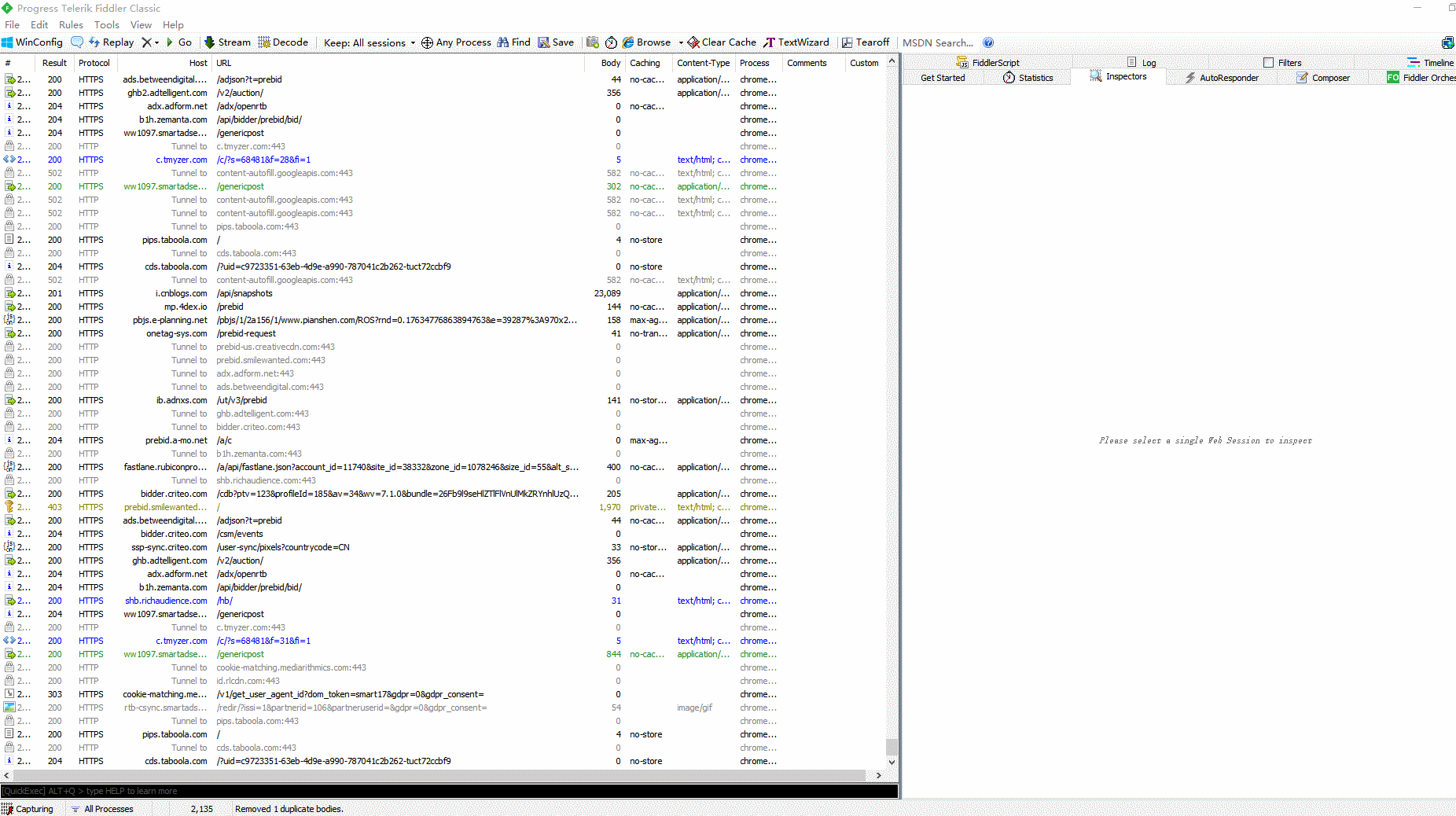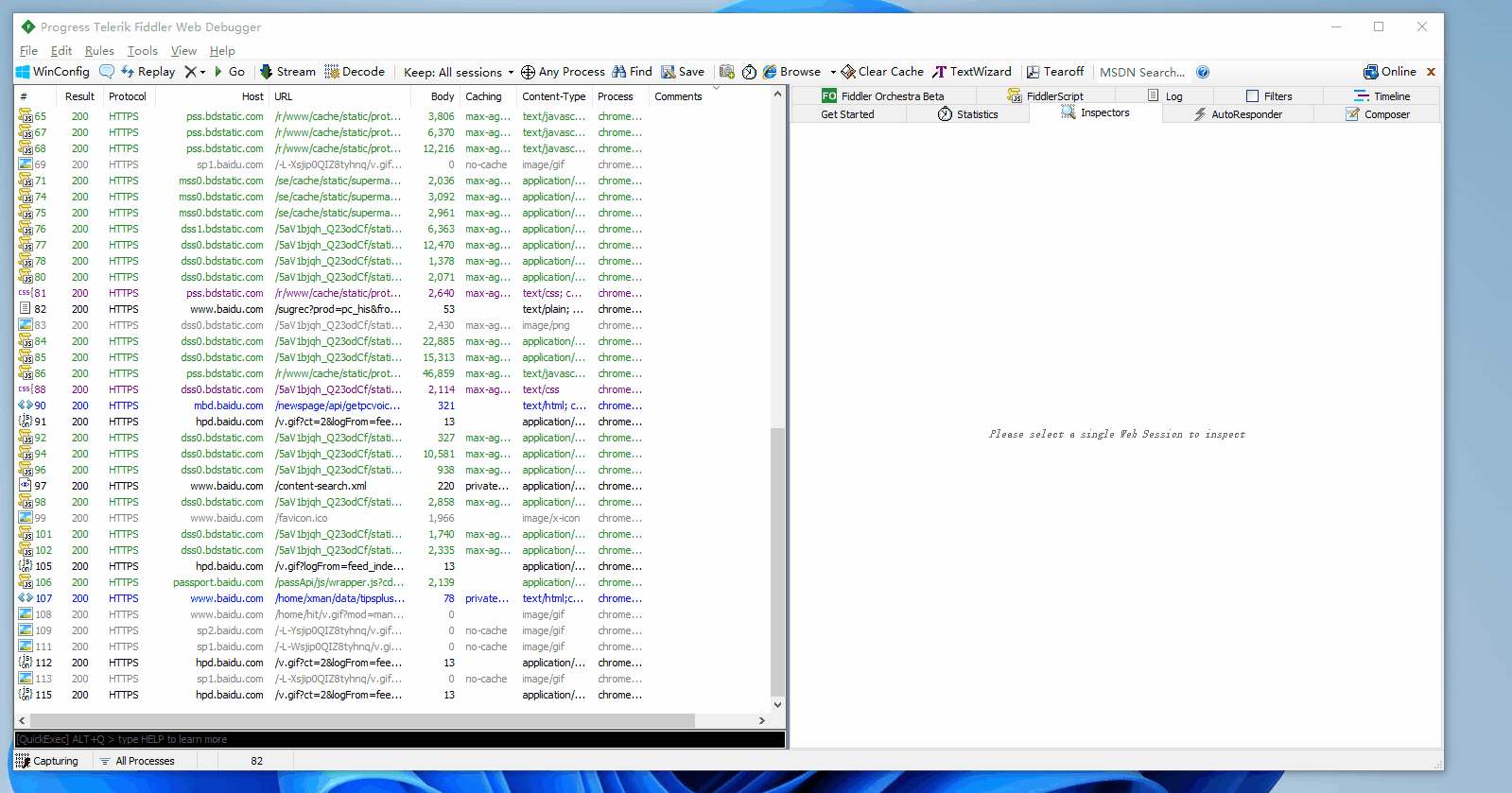 Fiddler的主界面概览,如下图所示: