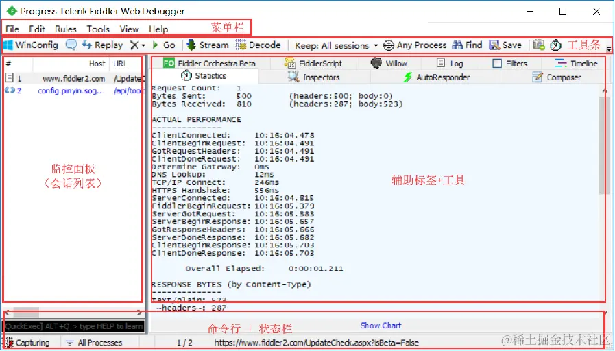 2.1Fiddler主界面概览