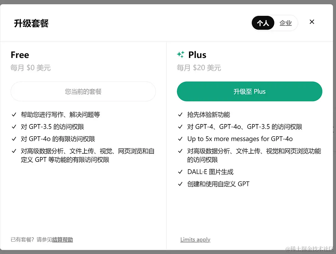 成功注册 ChatGPT 后,需要为订阅ChatGPT Plus服务付费或者作为开发者绑定信用卡使用OpenAI Api服务。
