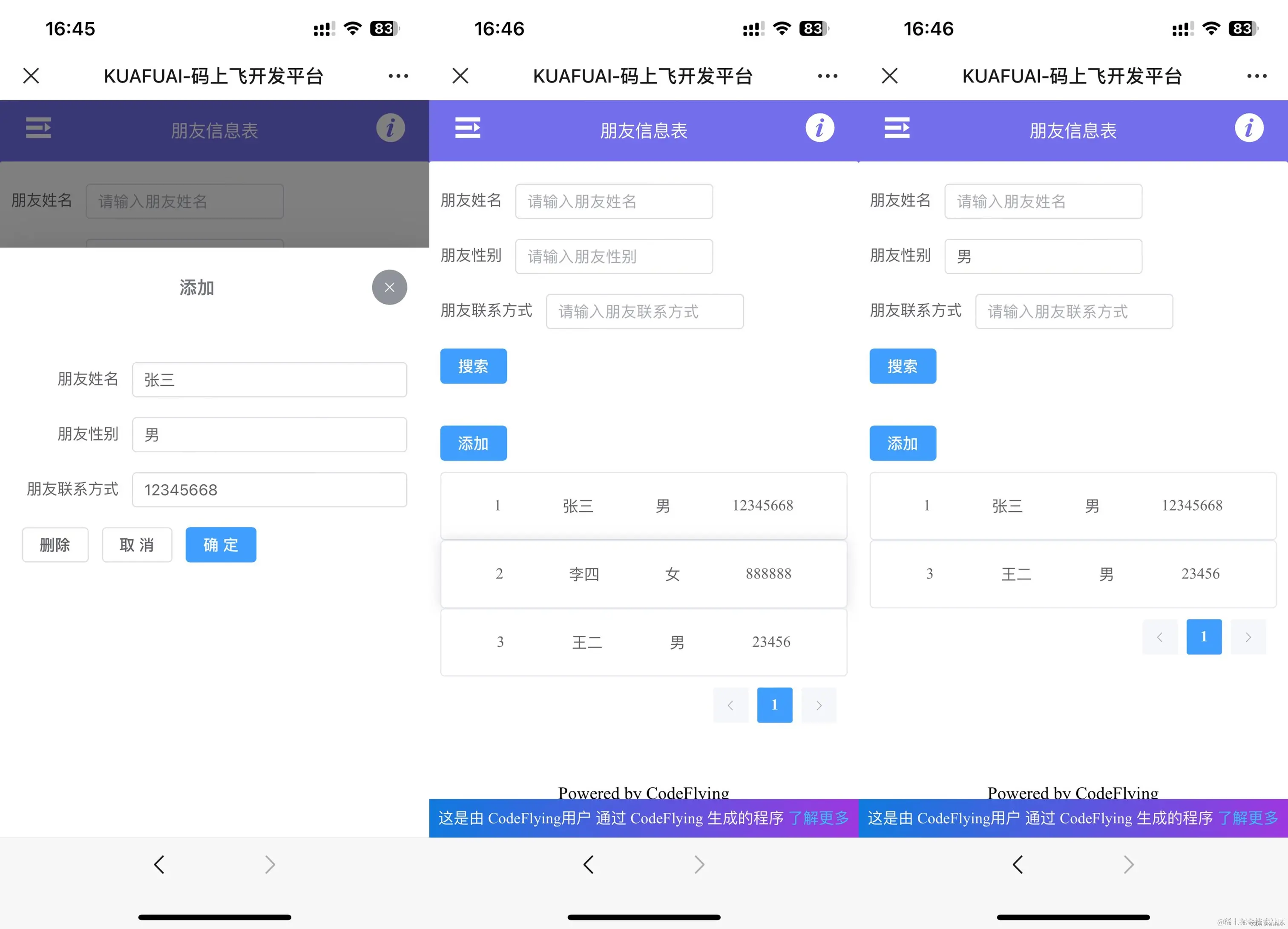 添加了几个朋友的信息,然后试了一下搜索和删除的功能,全都没问题。另外有任何调整的需求都可以随时在聊天框内提出。