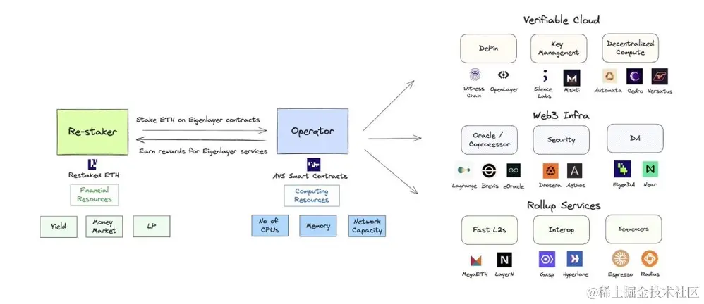 AVS 的核心承诺是为任何计算(无论是链上计算还是链下计算)提供 Web3 信任保证。其架构支持可验证的云服务及可验证的计算。