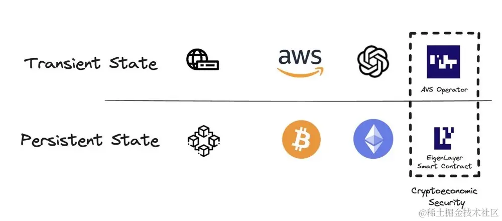 与中心化云服务提供商不同,AVS 服务由以太坊运营商的子集提供支持,这些运营商会投入其加密货币质押份额来证明其诚实可靠。即使临时层的状态被破坏,用户资金在持续的区块链层上仍然是安全的。