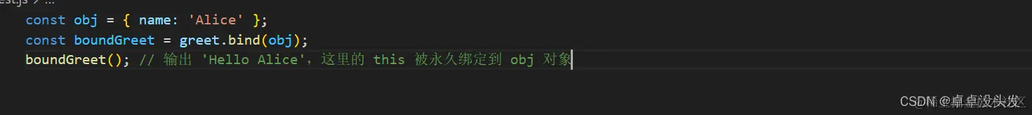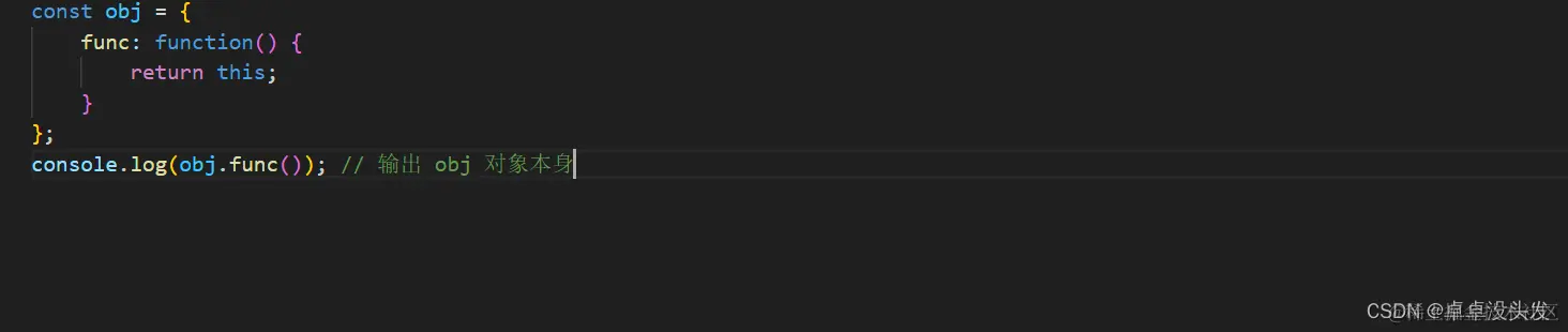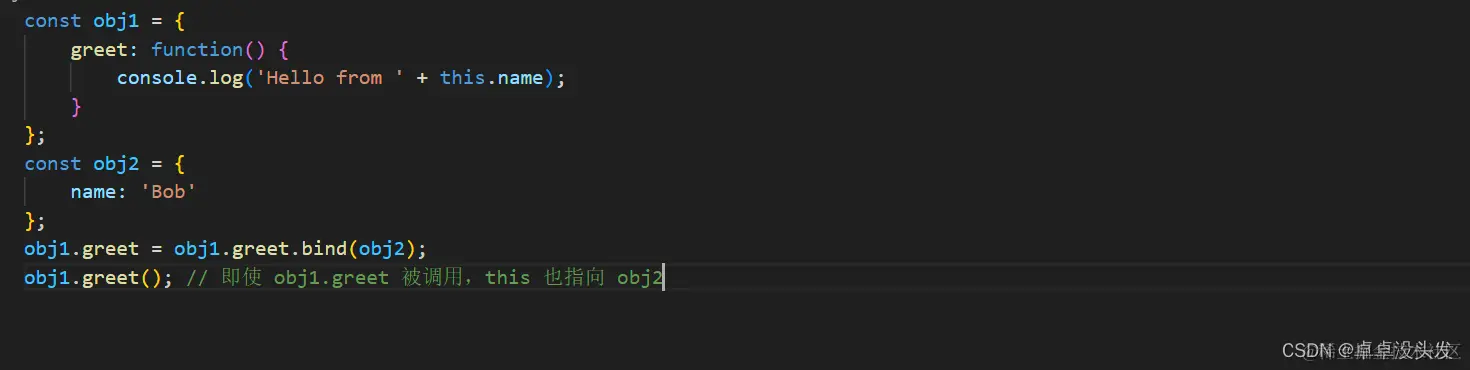 this隐式绑定到该对象。如果方法被重新赋值给一个不同的对象,this会指向新的对象。编辑