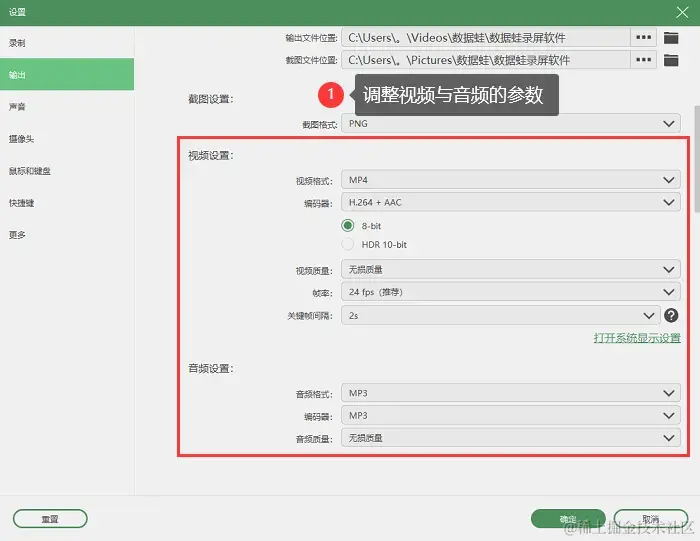 步骤3:在录制之前,您可以在输出设置页面修改录制参数(如视频分辨率、帧率、音频质量等),以提高录制效率。