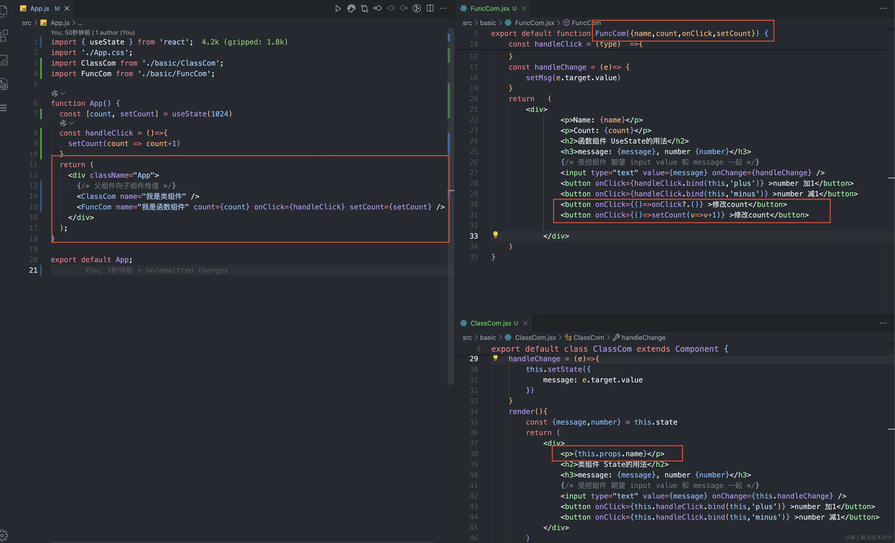 <FuncCom name="我是函数组件" count={count} onClick={handleClick} setCount={setCount} />