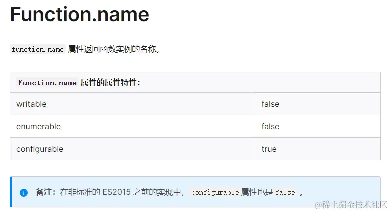 MDN中已经给出答案,此时Function.name的描述符配置项中writable:false, 也就是说明函数的名称是只读的属性,不可以更改;