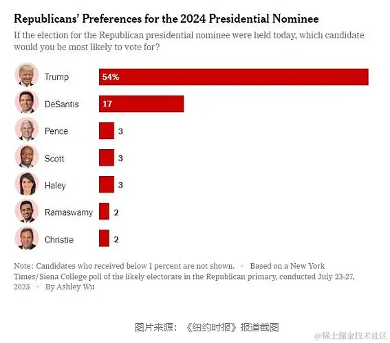 目前在民调中特朗普以相当大的优势领跑其他共和党人,不过,随着越来越多的共和党人宣布参选、特朗普涉嫌案件,最终谁将代表共和党角逐2024年美国总统选举还充满了未知。