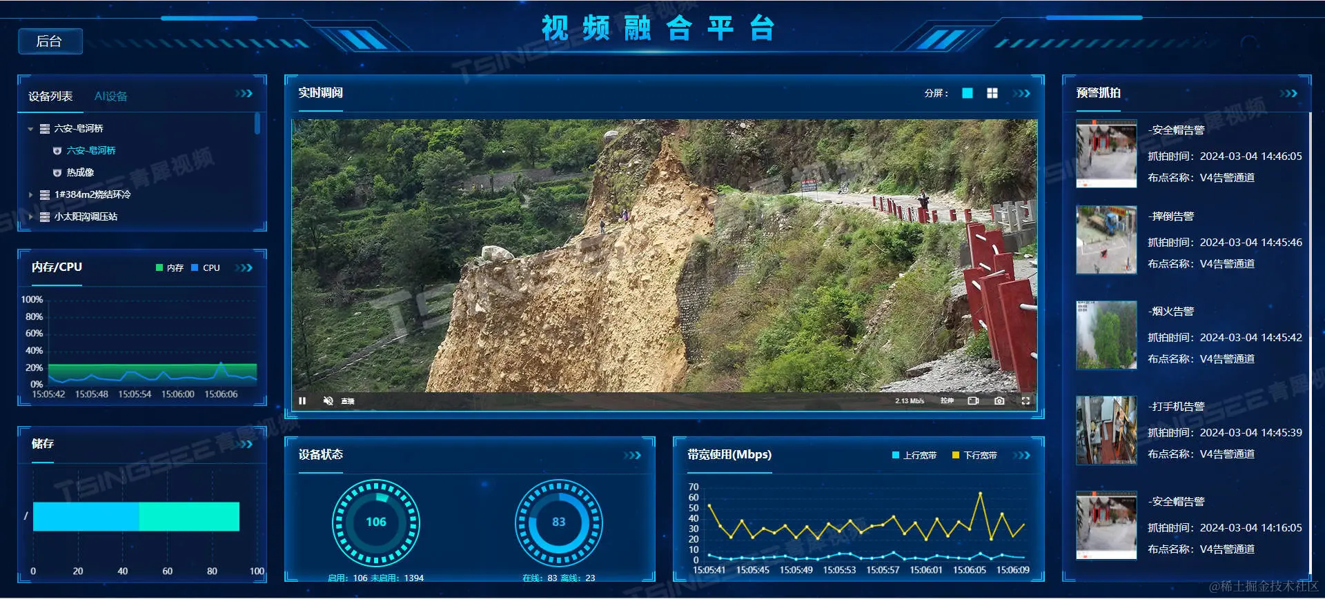 国标GB28181协议EasyCVR安防视频监控平台可以提供实时远程视频监控、视频录像、录像回放与存储、告警、语音对讲、云台控制、平台级联、磁盘阵列存储、视频集中存储、云存储等丰富的视频能力,平台支持7*24小时实时高清视频监控,能同时播放多路监控视频流,视频画面1、4、9、16个可选,支持自定义视频轮播。感兴趣的用户可以前往演示平台进行体验或部署测试。