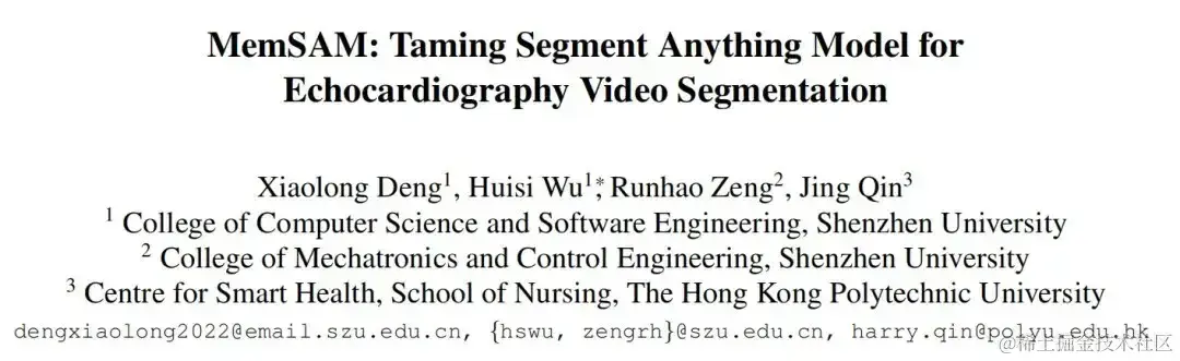 基于此,由深圳大学计算机与软件学院和香港理工大学智能健康研究中心联合组成的团队,在计算机视觉顶级会议 CVPR 2024 上发布了题为「MemSAM: Taming Segment Anything Model for Echocardiography Video Segmentation」的论文。在论文中,研究人员提出了一种新颖的超声心动图视频分割模型 MemSAM,将 SAM 应用于医学视频。