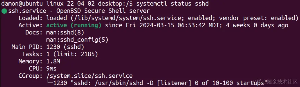 图 4:检查服务是否已启用且处于活动状态。请注意,此处服务名为“ssh”。