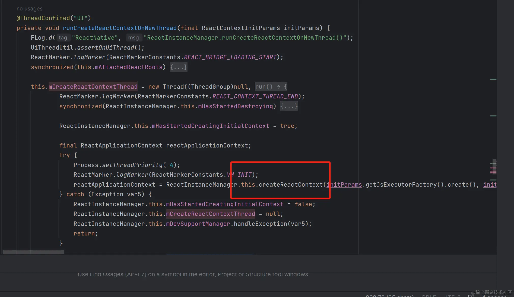 - createReactContextInBackground最终调用到runCreateReactContextOnNewThread创建新context。