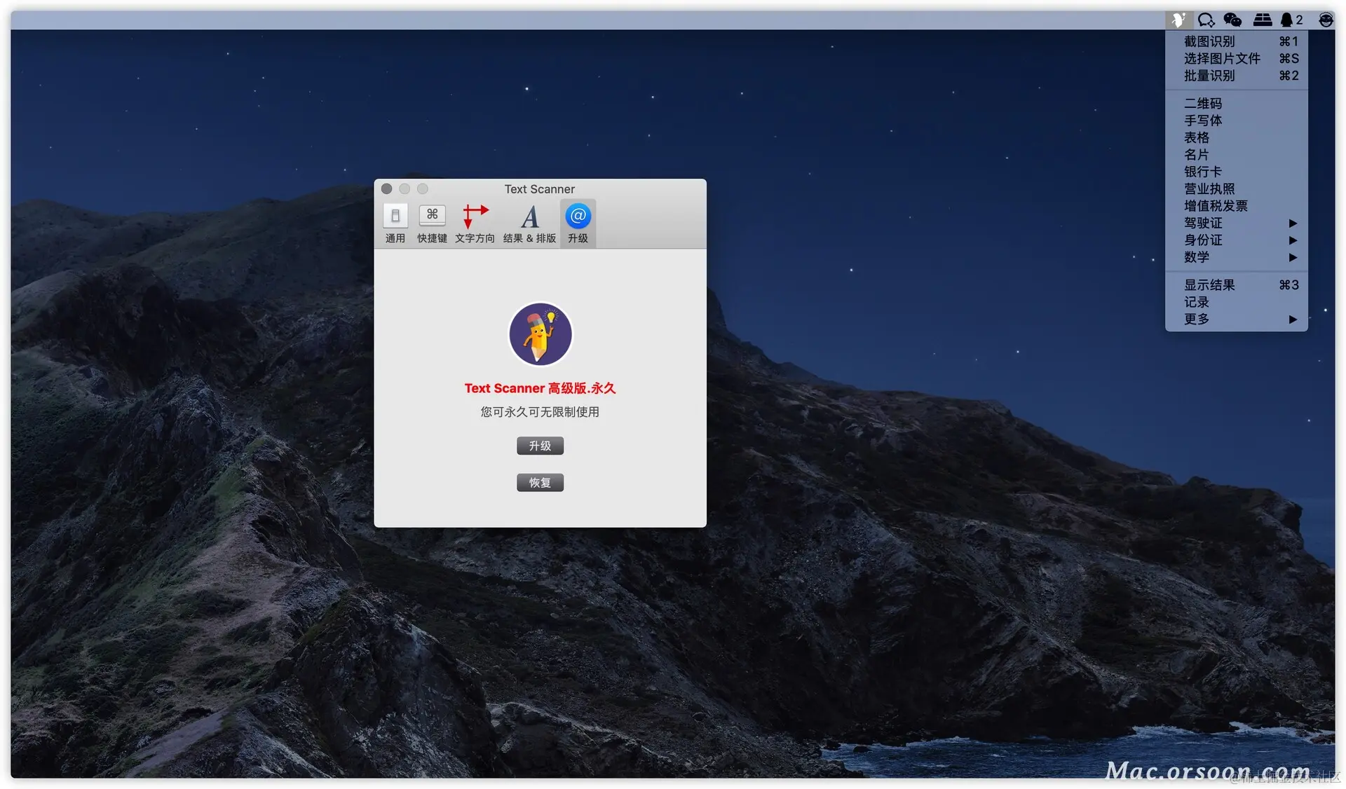 Text Scanner Mac版是一款功能强大的图片扫描文字识别工具, 基于AI领先的shen度学习算法,利用光学字符识别技术,将图片上的文字内容,直接转换为可编辑文本。