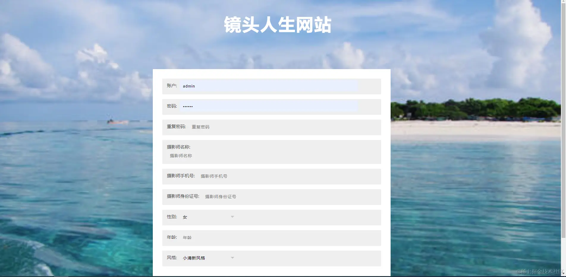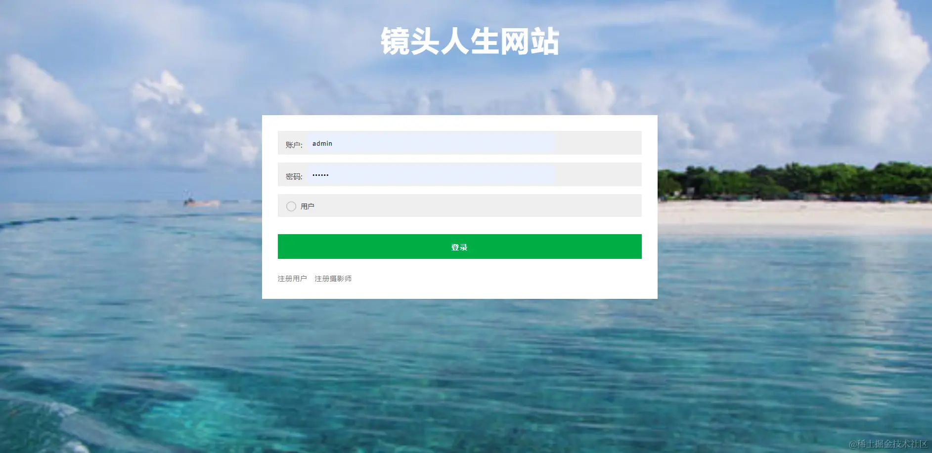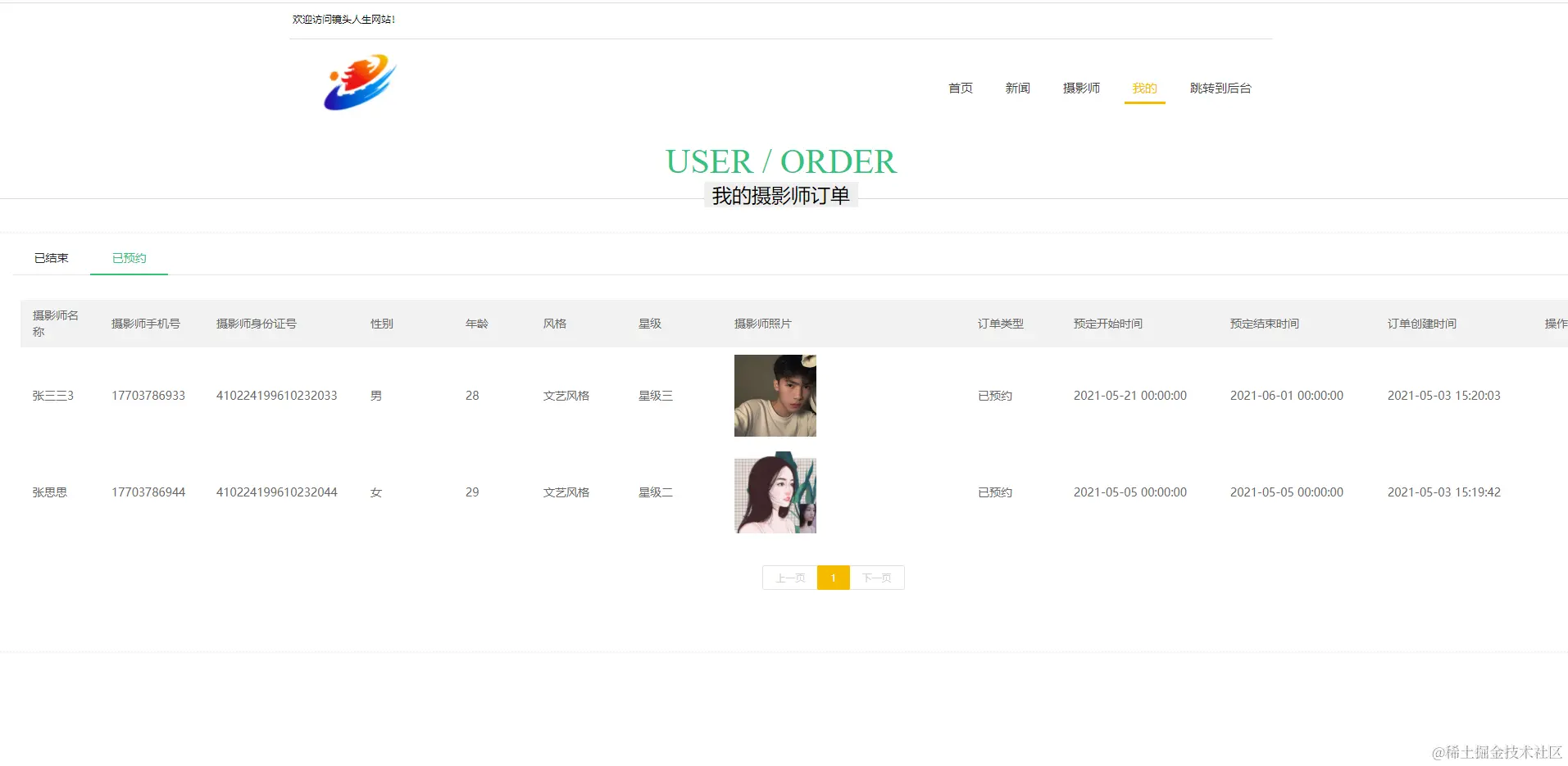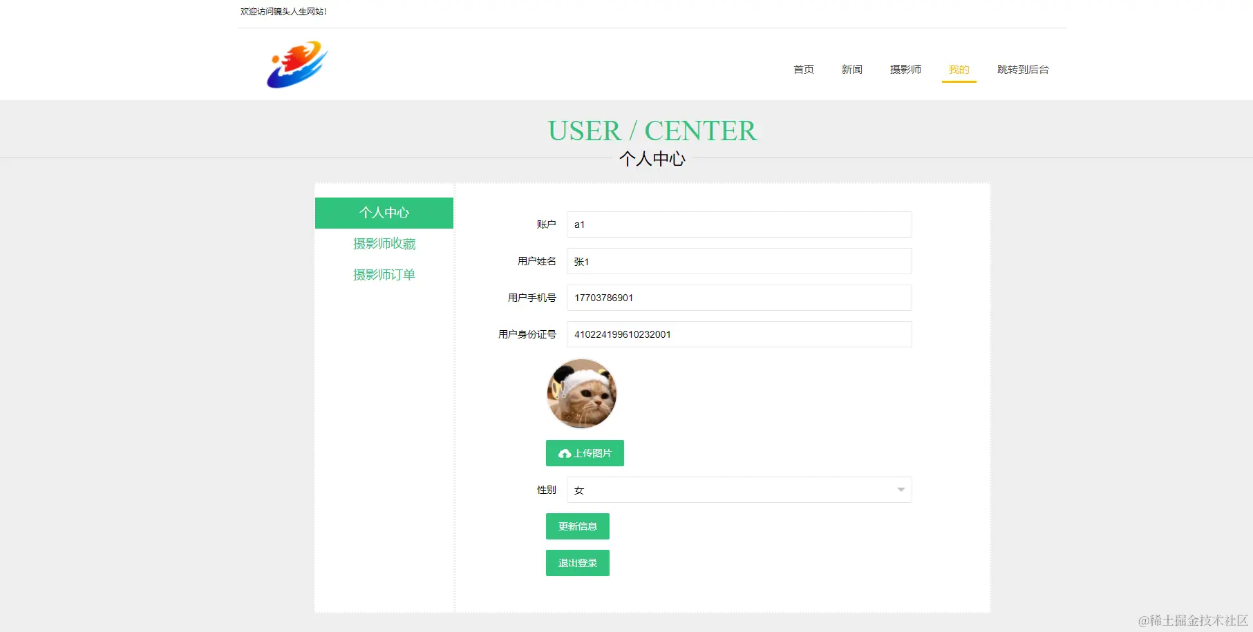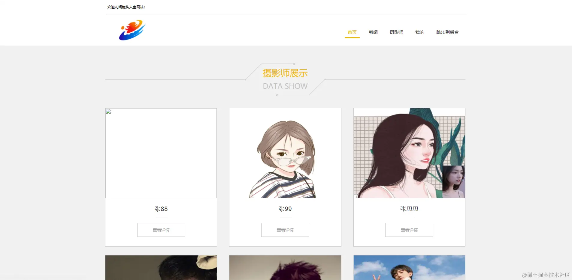 镜头人生网站,在镜头人生网站可以查看摄影师信息、我的、跳转到后台等内容,如图5-17所示。