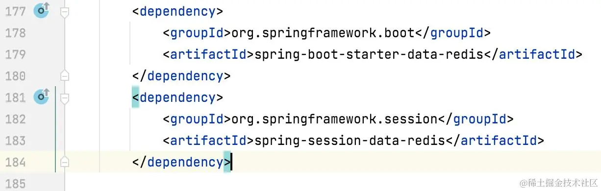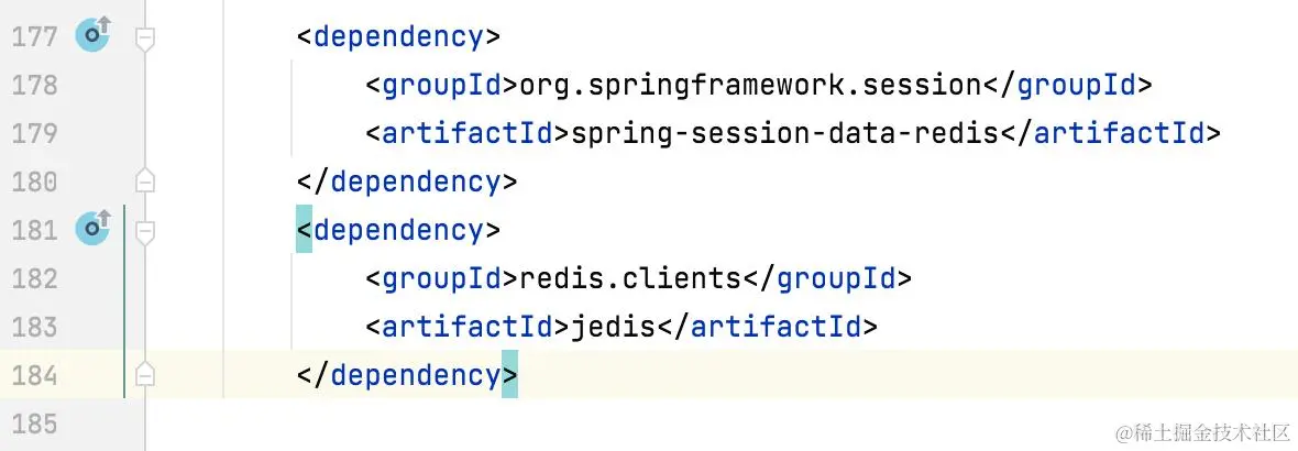 在SpringBoot项目的pom.xml中添加Redis和Spring Session的依赖。