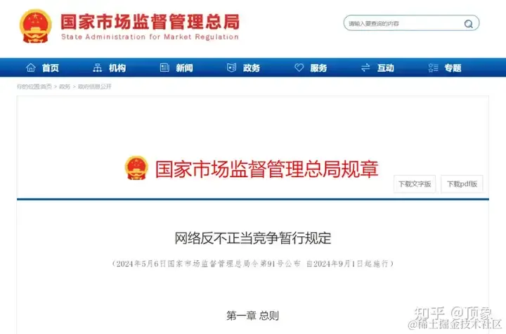 近日,国家市场监督管理总局公布《网络反不正当竞争暂行规定》 ,自2024年9月1日起施行。《网络反不正当竞争暂行规定》是为预防和制止网络不正当竞争行为,维护公平竞争的市场秩序,鼓励创新,保护经营者和消费者的合法权益,促进数字经济规范持续健康发展。