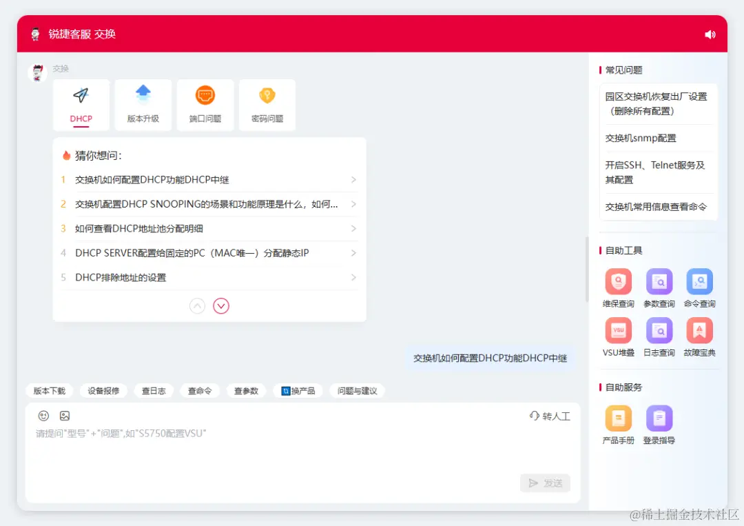 选择首先重构知识库,是因为锐捷网络的客户服务,大多数问题都是标准化的。比如产品参数,产品指令、操作说明、产品文档查询,产品型号确认、安装流程和组网部署等等。