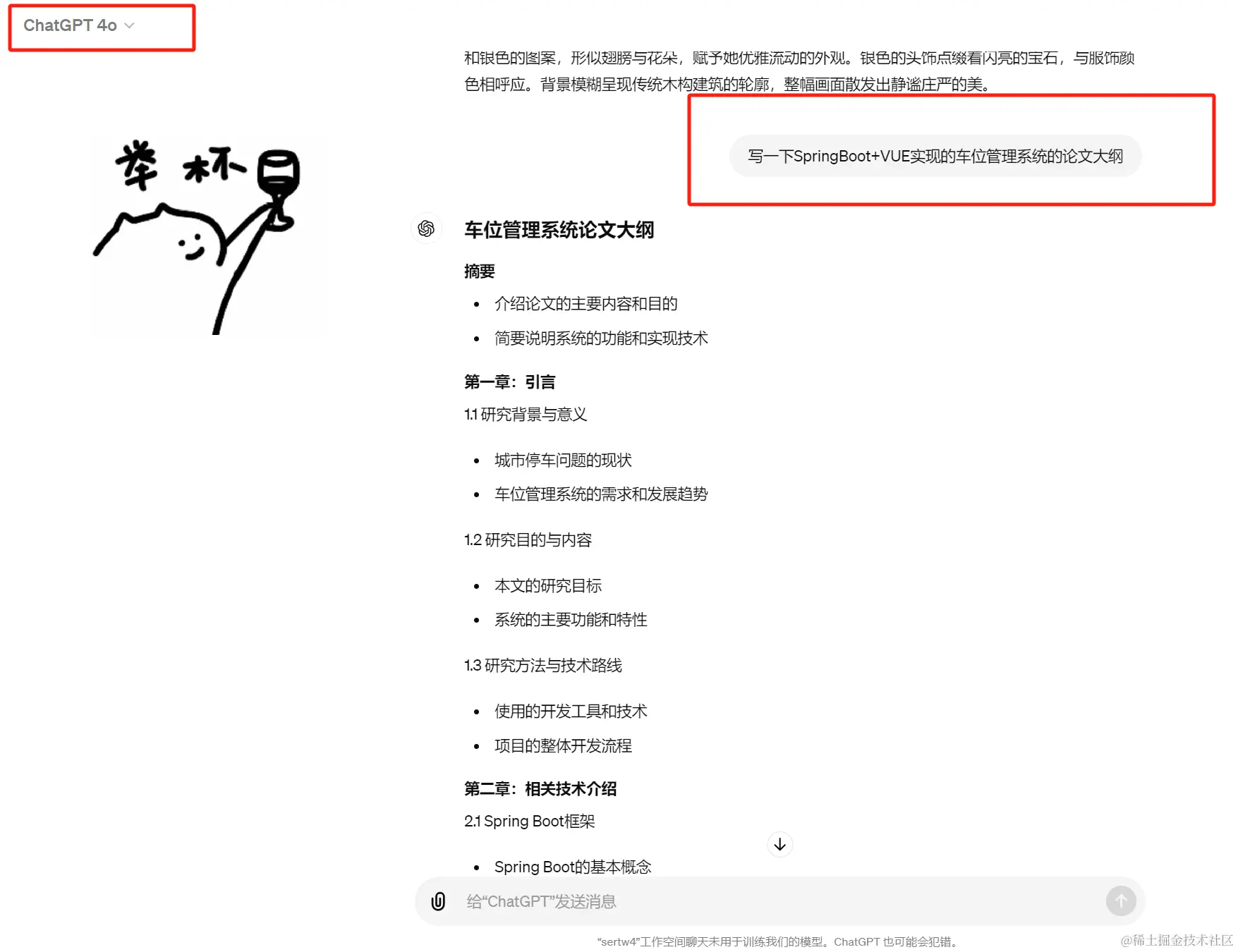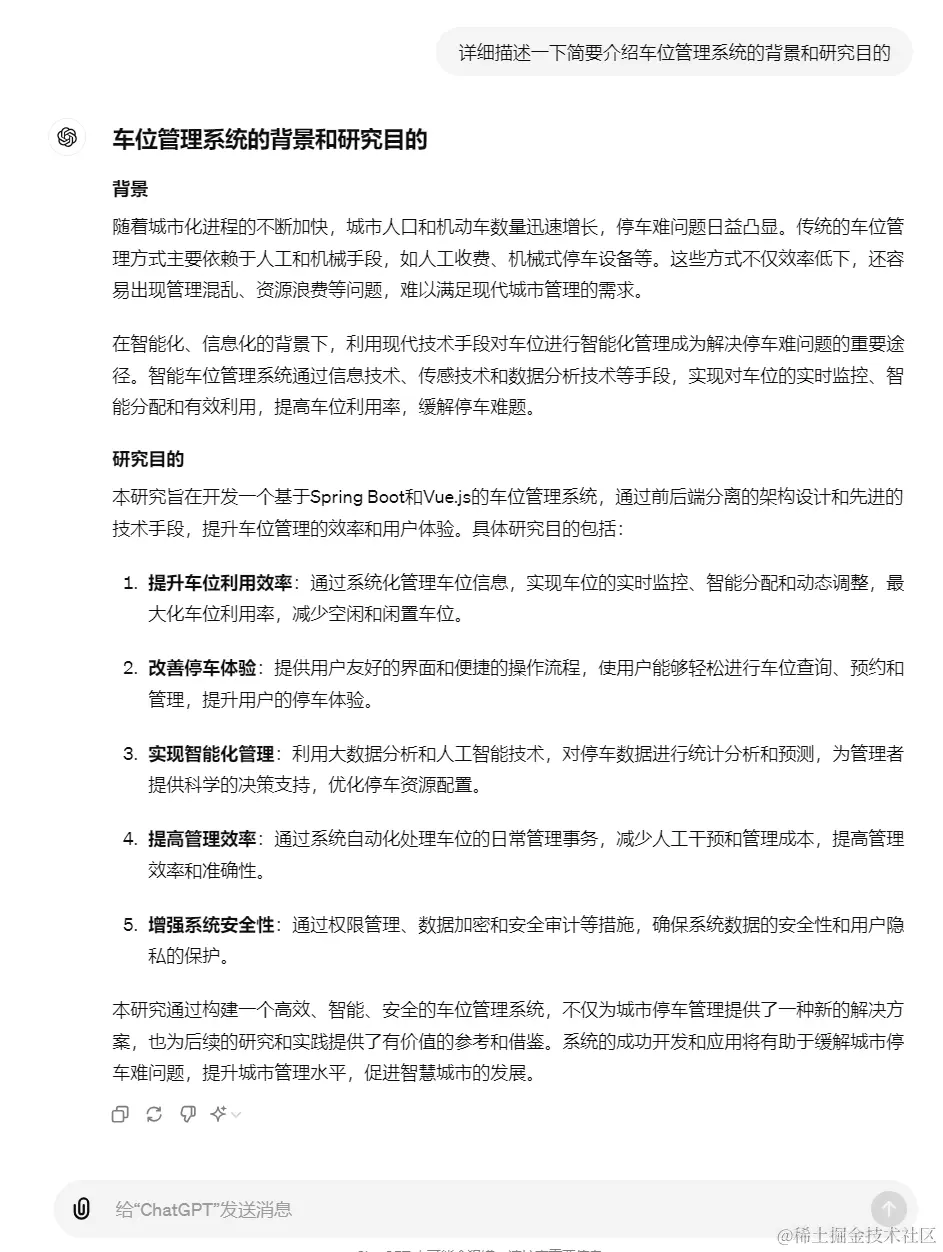 在ChatGPT4o对话框中输入:写一个Spring Boot+Vue实现的车位管理系统的论文大纲,并对其具体章节进行详细描述。