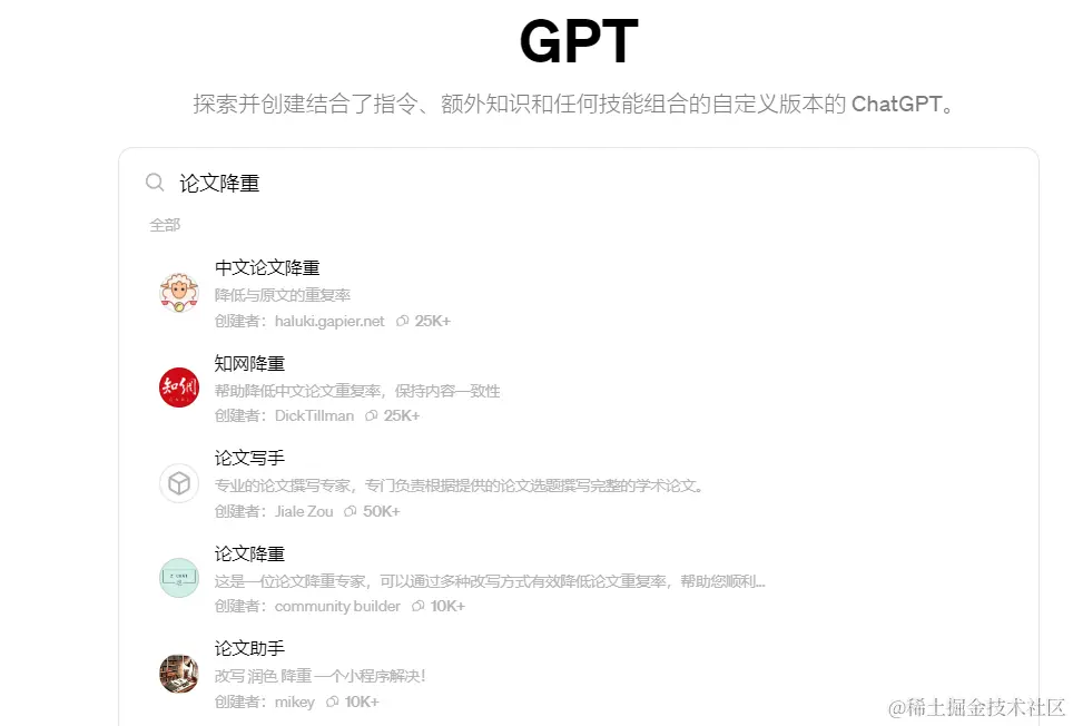 搜索GPT ---> 论文降重 ---> 中文论文降重。