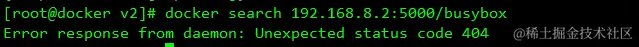 1.5.2、在私人仓库里面搜索镜像也出错:Unexpected status code 404 #搜索docker镜像的时候返回404错误,找不到镜像。