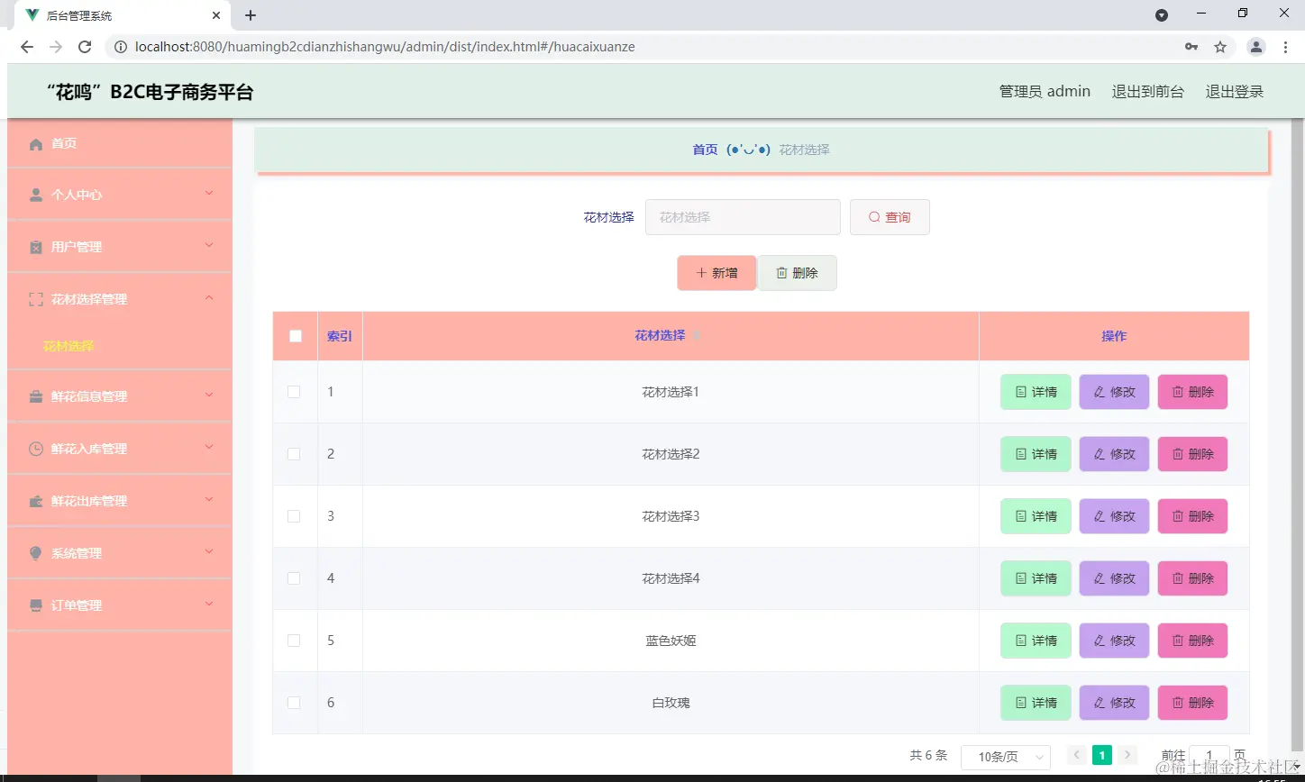 图5.2 花材信息管理页面