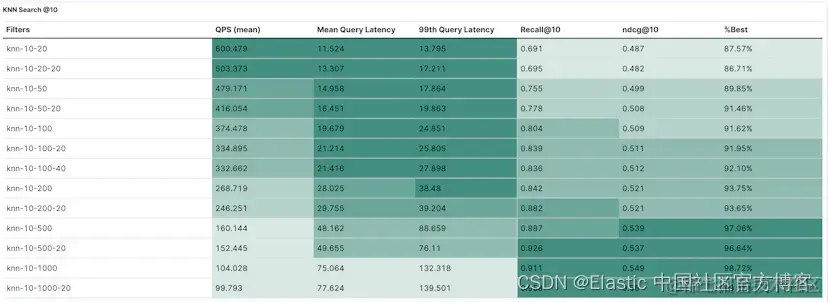 操作根据这三个参数命名。例如,knn-10-100-20 表示 k=10、num_candidates=100 和 num_rescore=20。如果省略最后一个数字,如 knn-10-100,则 num_rescore 默认为 0。