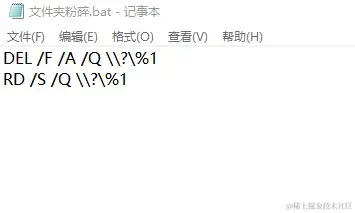 步骤3:右键单击将文件重命名为**【粉碎文件夹.bat】(名称可以是任何内容,但后缀必须是【.bat】**)并保存。