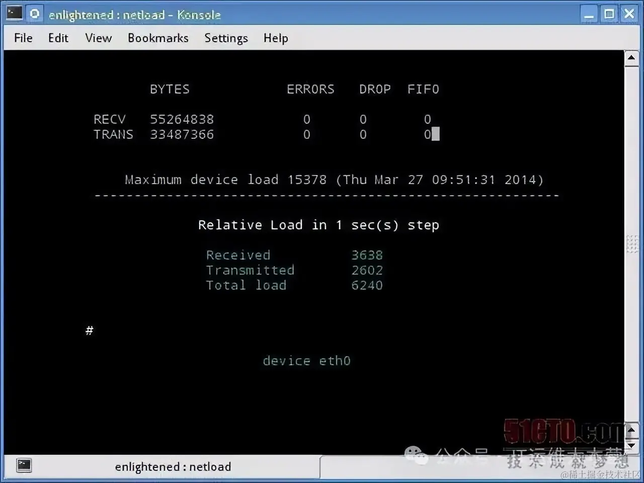 netload命令只显示关于当前流量负载的一份简短报告,并显示自程序启动以来所传输的总字节量。没有更多的功能特性。它是netdiag的一部分。