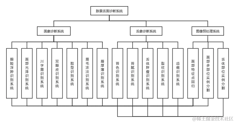 舌面诊断系统共包含三个子系统,分别为面象诊断系统、舌象诊断系统和图像预处理系统。·