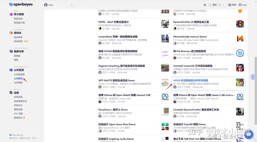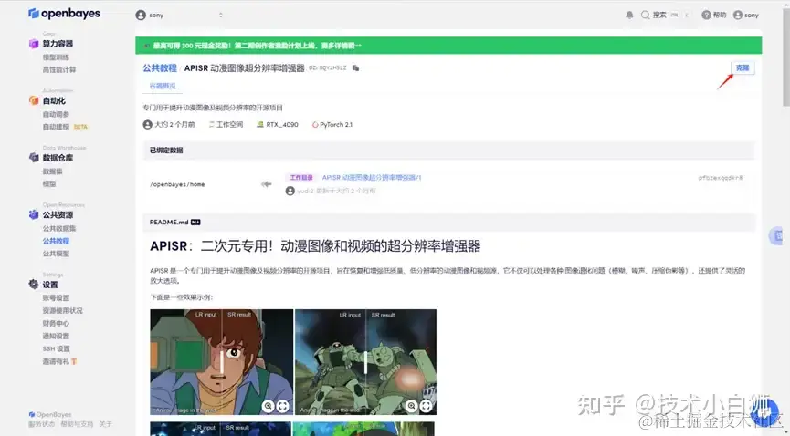 登录到 OpenBayes 平台后,打开公共教程,找到「APISR 动漫图像超分辨率增强器」教程。