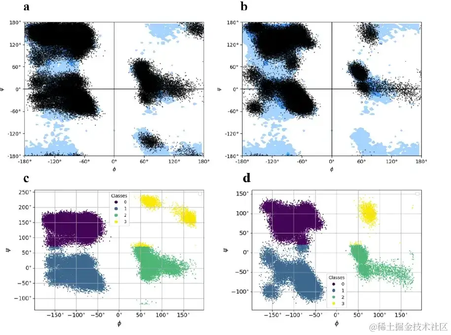 结果表明,该模型能够成功地对构象进行采样和展开, 并且能够正确执行 Φ、Ψ 的二面体约束。