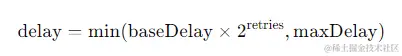 给定一个基础延迟时间 baseDelay 和最大重试次数 maxRetries,每次重试的等待时间可以表示为: