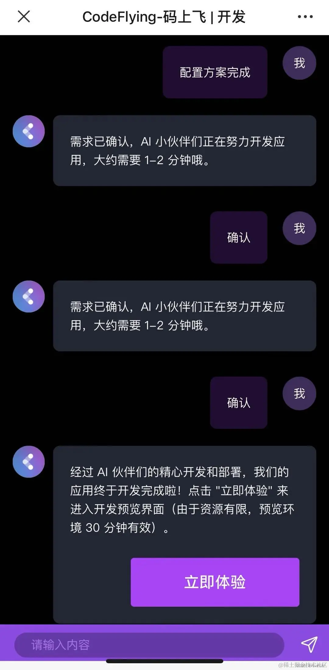 首先需要用到我们的CodeFlying,它能够通过自然语言的输入方式,让AI来自动化的输出应用程序。具体应该如何操作呢,请看如下图文所示:
