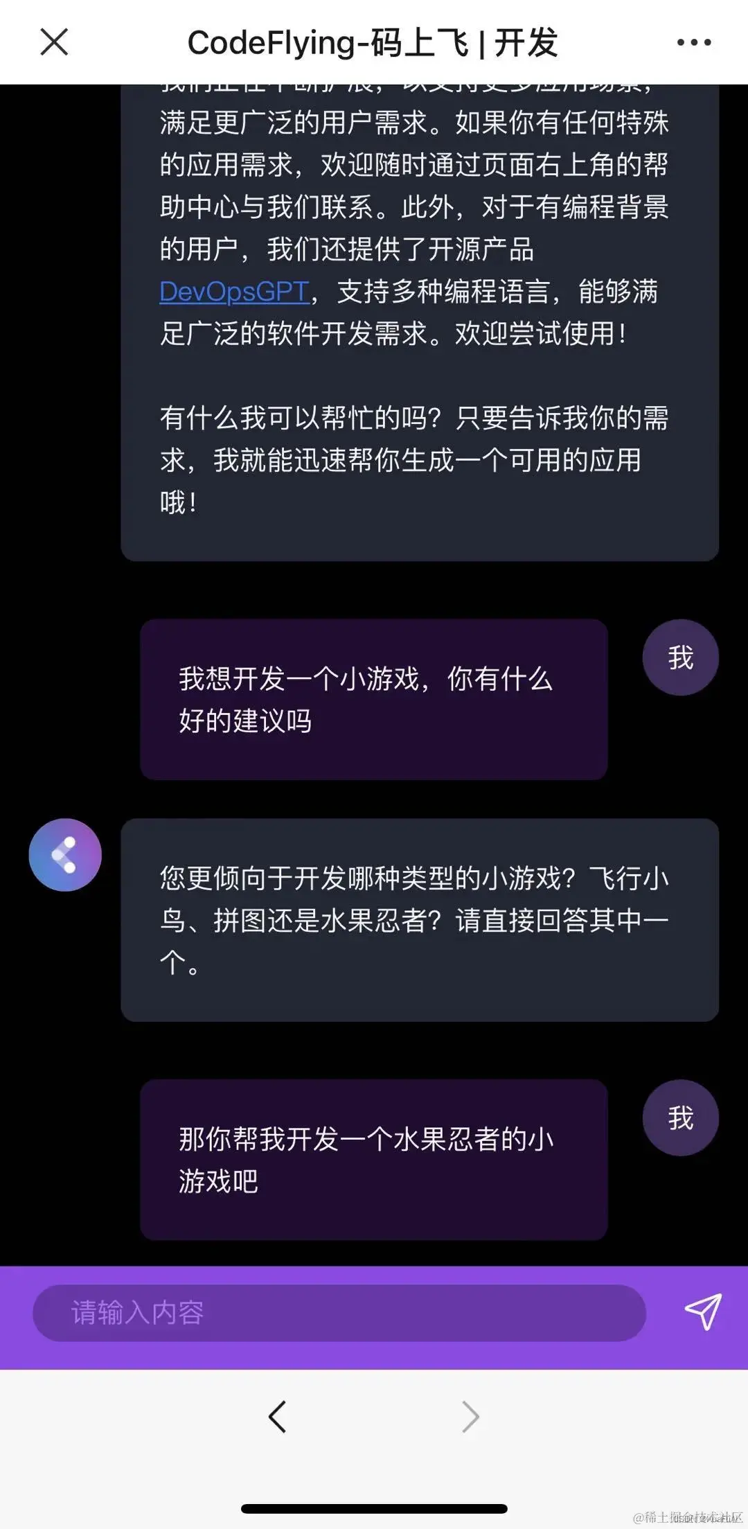 “水果忍者”整蛊小游戏,只是一个很简单的应用,除了水果忍者之外,还可以用CodeFlying,来开发其它的应用哦(小游戏、管理系统、聊天机器人...)