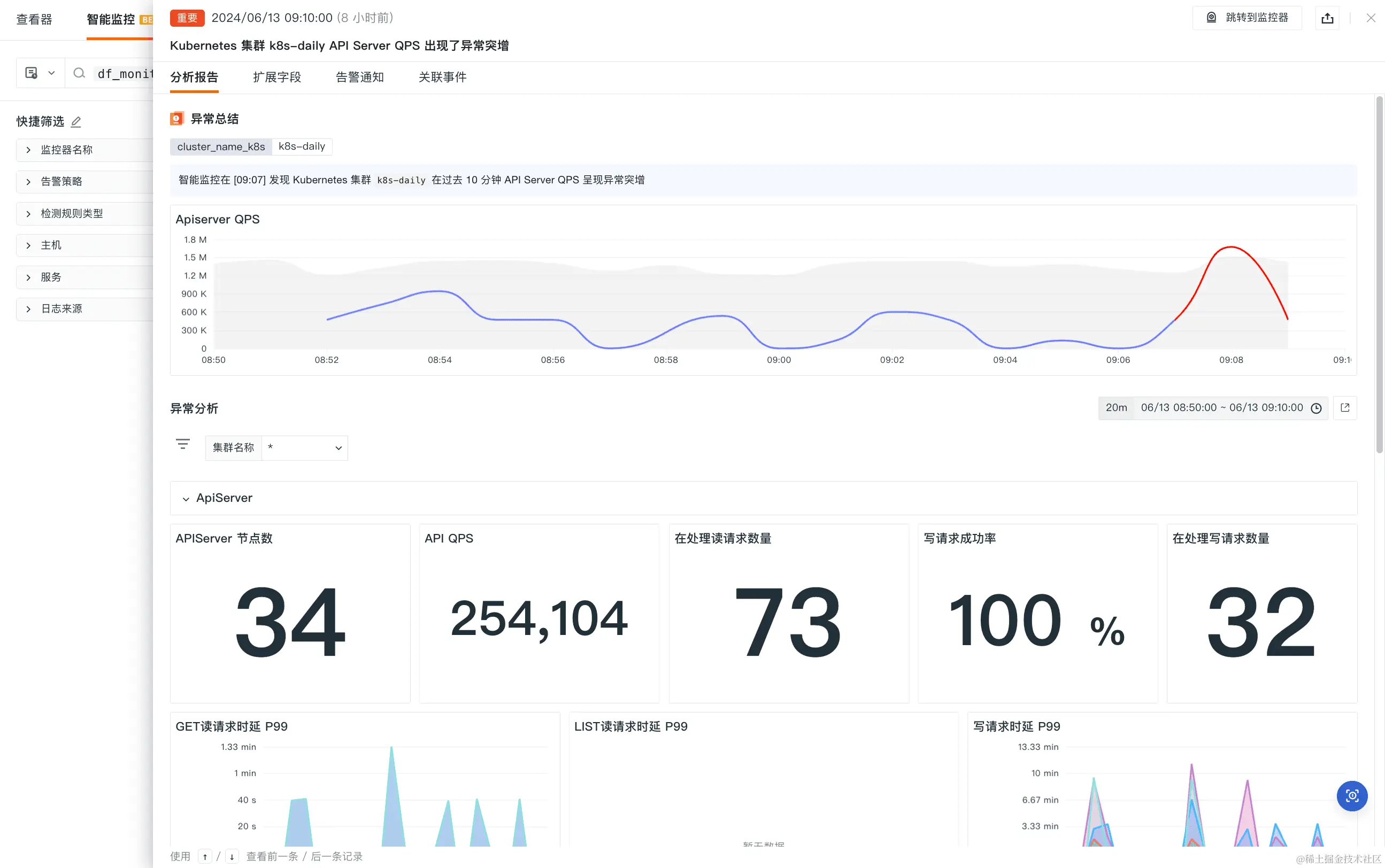 1、智能监控:新增 Kubernetes 智能检测:通过智能算法自动检测 Kubernetes 中的异常,检测指标包含 Pod 总数,Pod 重启,APIServer QPS 等。