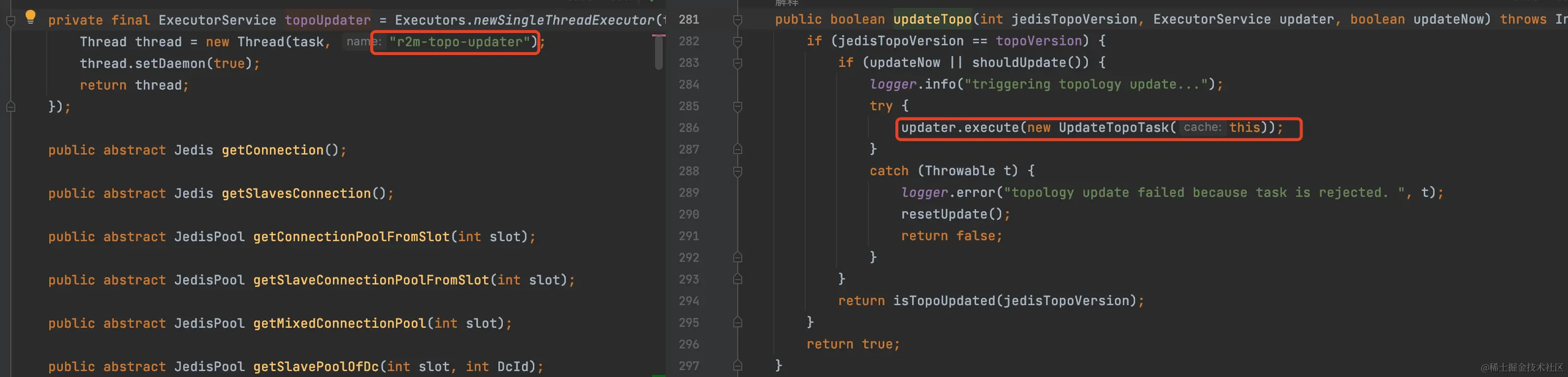 1)此问题在特定的使用场景下才会小概率出现,非常感谢中间件团队一起协助定位问题,后续也将异步更新拓扑改为同步处理。