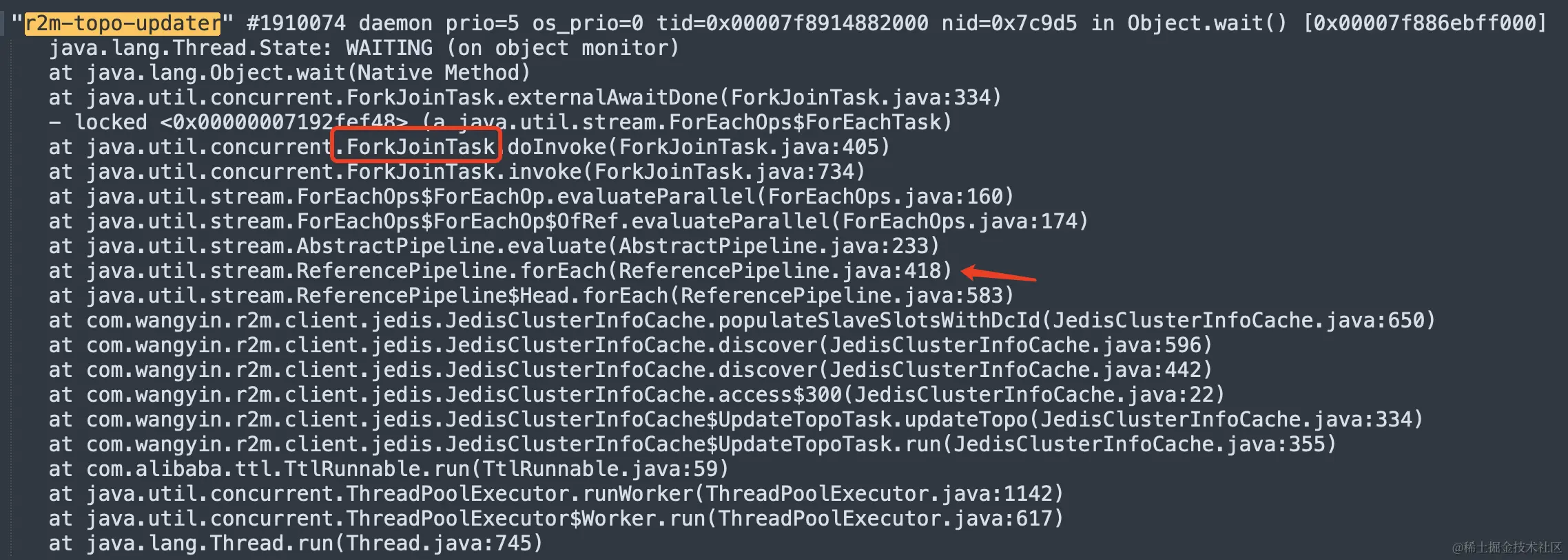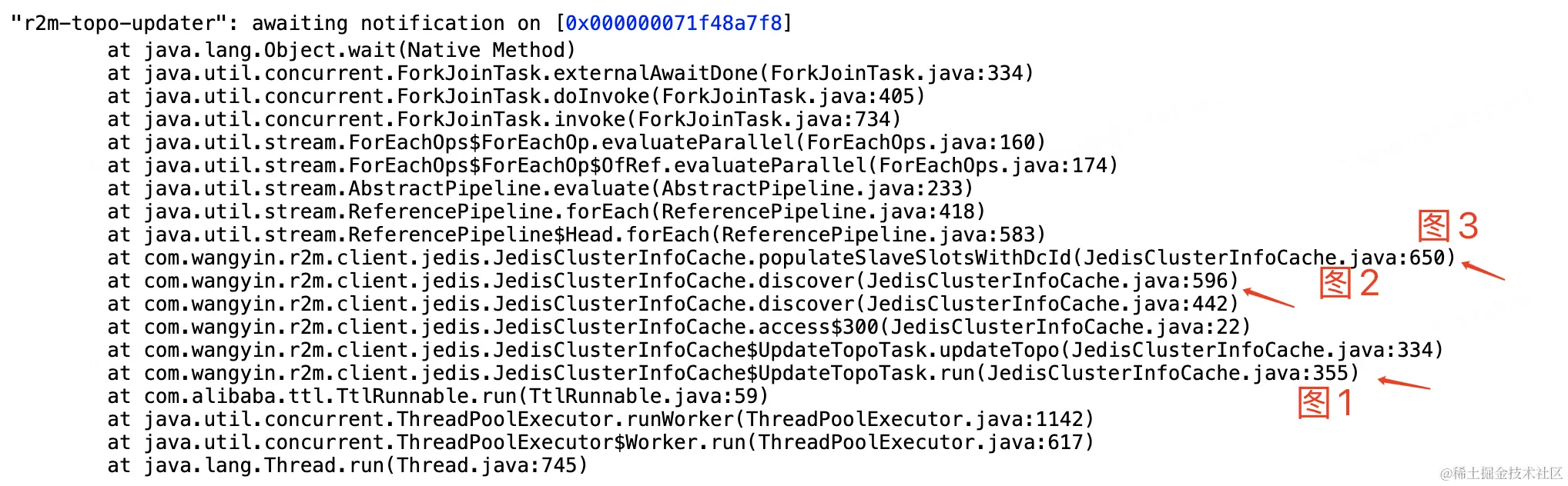 3个ForkJoinPool.commonPool-worker的确都夯在获取redis连接处,线程池的活跃线程都在等待读锁。