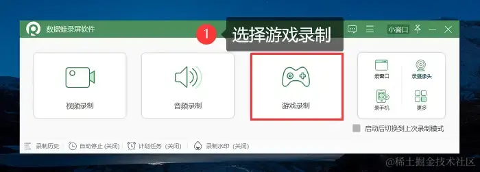 步骤2:安装完成后,进入首页,选择 【游戏录制】 模式。除此之外,还有多种录制模式可供你选择,满足您的日常需求。