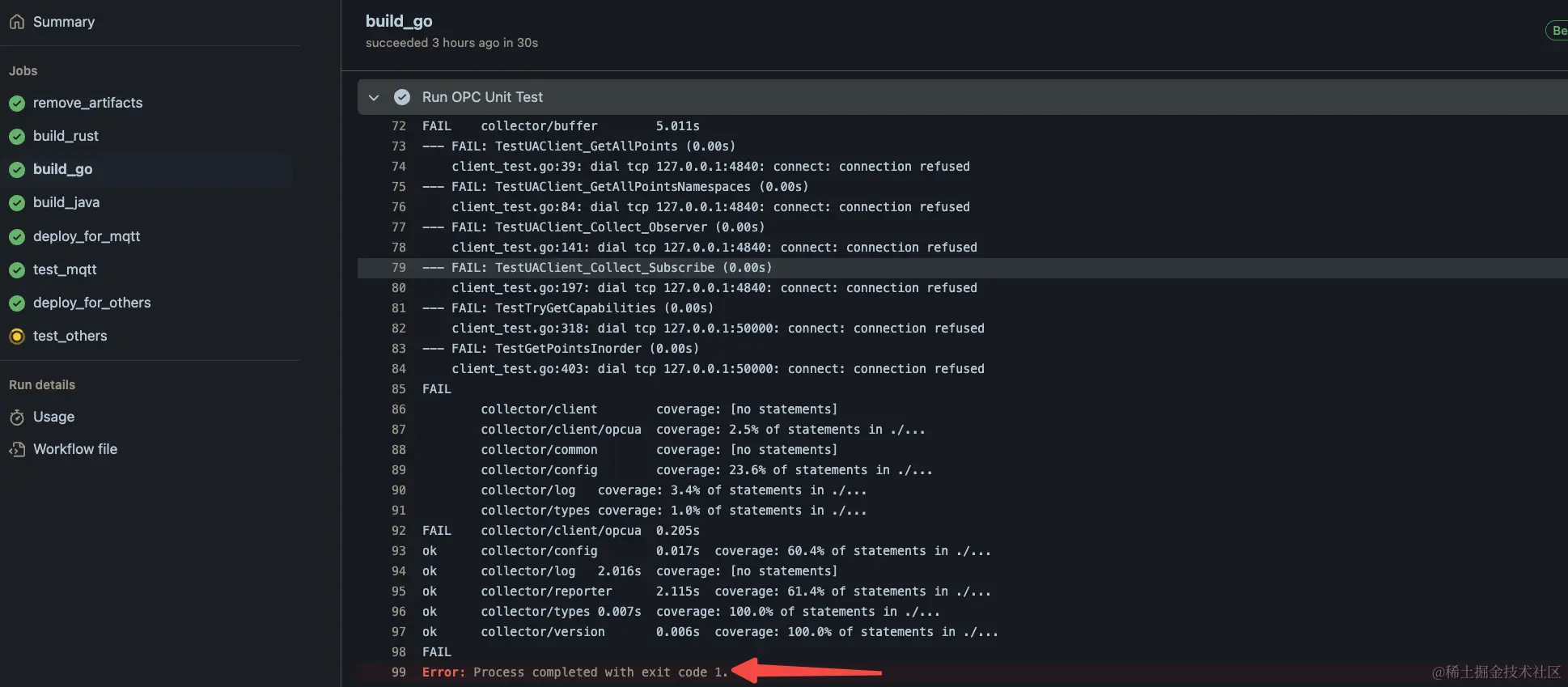 同样,MQTT 的单元测试报告在单元测试完成之后会输出,并拷贝到 $ARTIFACT_BASE_DIR/$DIR_PATH/go_cover/mqtt_cover_data/,用于之后与端到端测试覆盖率报告合并。
