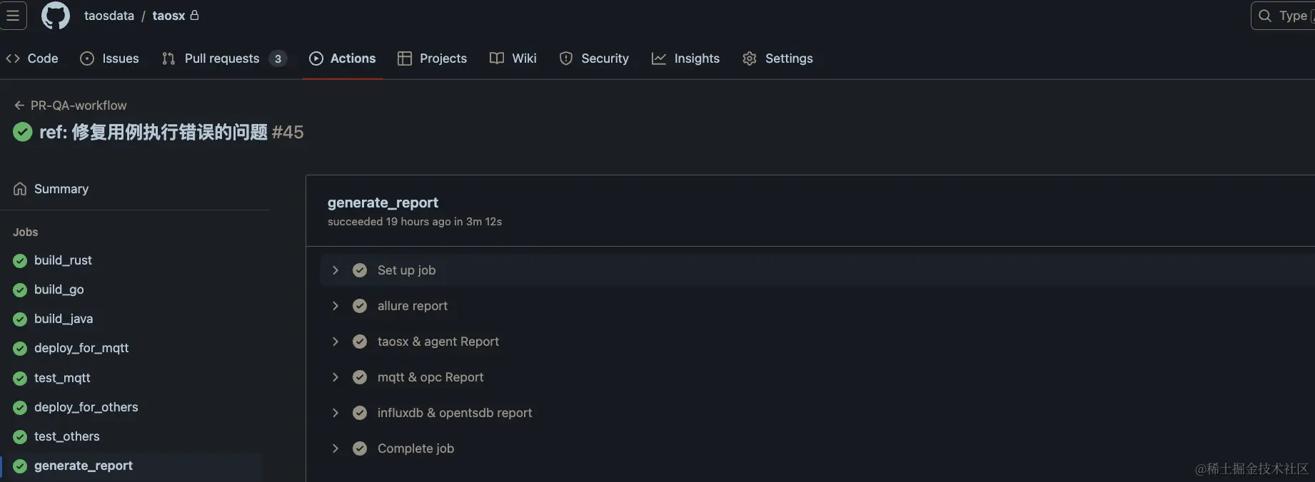 - 通过点击执行的 Action 可以查看执行的结果。