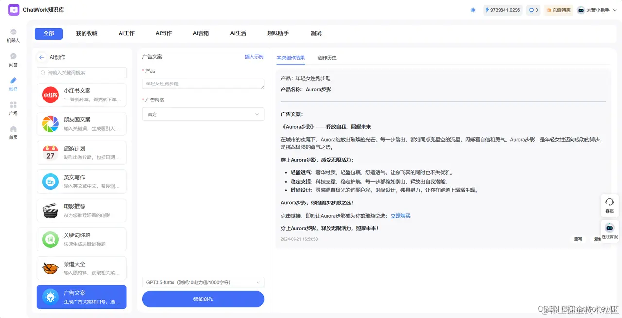 - 抓住用户痛点,创造共鸣:ChatMoney能根据我设定的目标受众和场景,生成极具针对性的广告文案。它精准把握用户需求,让我创作的广告深入人心,引发广泛共鸣。