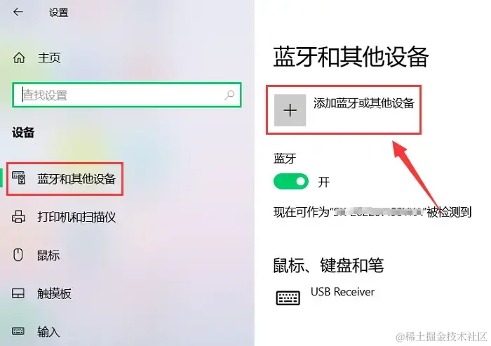 步骤3:点击【蓝牙和其他设备】选项,在右侧页面寻找并点击【添加蓝牙或其他设备】按钮。