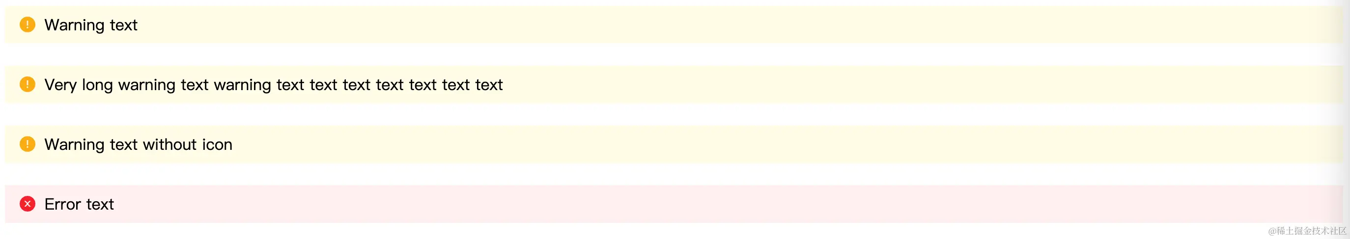 页面顶部通告形式,默认有图标且type 为 'warning'。