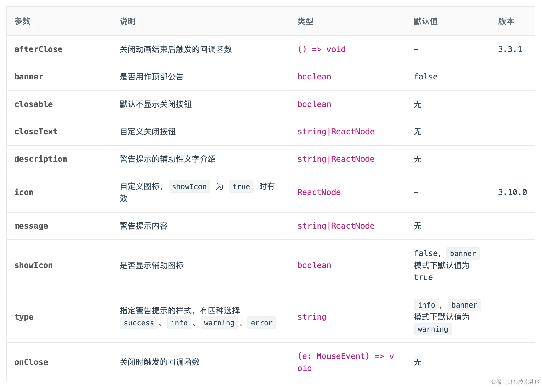 我们先来看下一个Alert组件对外支持的Api有哪些?