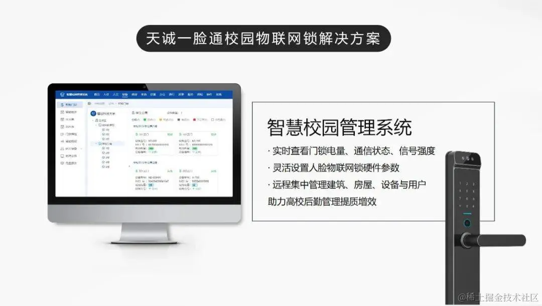 天诚校园物联网锁的部署及新版智慧校园管理系统的应用,实现了建筑、设备及人员信息管理、数据传输、网络连接的同步协作,保证了校园安全的稳定和后勤管理的效率。
