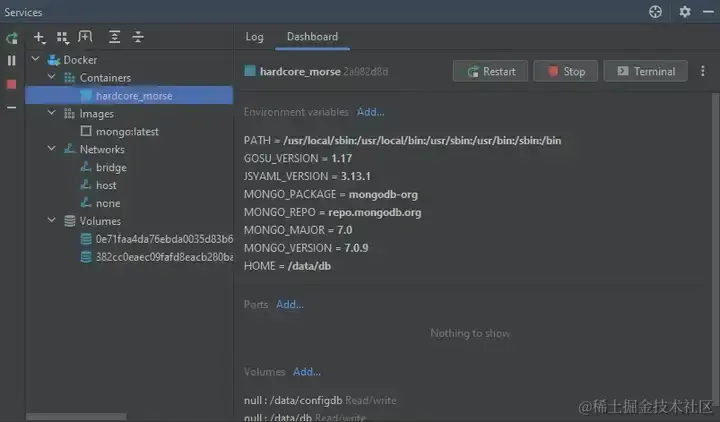 安装完成后,你会在IDE的服务(Services)选项卡中看到Docker,从那里你可以管理你想要的一切!