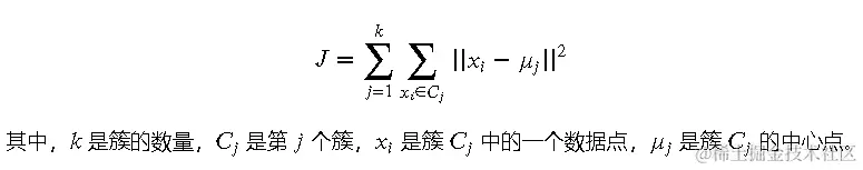 k-means 算法的目标是最小化簇内数据点与中心点之间的总距离,即最小化下式: